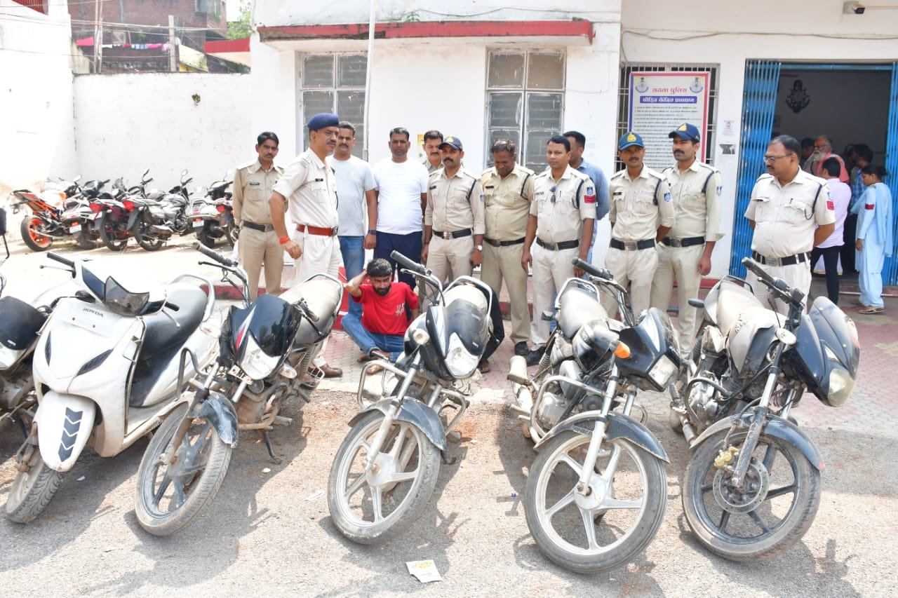 दिनांक 14.10.25 को फरियादी अमित कुमार पचौरी पिता प्रदीप कुमार पचौरी उम्र 25 वर्ष निवासी धवारी मल्लाहन टोला थाना सिटी कोतवाली के द्वारा थाना में एक आवेदन पत्र दिया गया कि इसकी मोटरसाइकल दिनांक 05.10.25 को सुबह 11.00 बजे सब्जी मंडी भुजवा टोला में होण्डा साइन क्र. MP19MF9080 ख़ड़ी करके सब्जी लेने चला गया था लौटकर देखा तो गाडी नही थी अगल बगल से पूछताछ कर इधर उधर पतातलास किया न मिलने पर दिनांक 14.10.25 को थाना आकर सूचना दिया जिसकी रिपोर्ट पर अपराध क्र. 735/25 धारा 303(2) बीएनएस का कायम किया जाकर माल मुल्जिम की पता तलाश की जाकर मुखबिर मामूर किये गये एवं वीडियो फुटेज के आधार पर आरोपी की पता तलाश की जाने लगी सीसीटीव्ही फुटेज व संदेही के हुलियां तथा मुखबिर के बताये अनुसार संदेही को मोटरसाइकल होण्डा साइन क्र. MP19MF9080 के साथ घेराबंद कर धरदबोचा गया जिससे नाम पता पूछने पर संदेही आरोपी के द्वारा अपना नाम राजपाल रजक पिता कलुआ रजक उम्र 24 वर्ष निवासी कांटी थाना आमानगंज जिला पन्ना हाल मुख्तियारगंज सतना का होना बताया घटना के संबंध में पूछताछ करने पर इसके द्वारा औऱ भी मोटरसाइकिले अपने साथी मोहित विश्वकर्मा पिता राजकुमार विश्वकर्मा उम्र 21 वर्ष निवासी आजाद चौक सब्जी मंडी के रहने वाले के साथ चोरी करना बताया एवं पूछताछ किये जाने पर दोनो आरोपियो के द्वारा बताया गया कि उक्त मोटरसाइकिले भोलू बसोर निवासी नारायण तालाब हवाई पट्टी बसोर बस्ती को बेंच दिय़े है साथ में दोनो आरोपियो को लेकर भोलू बसोर के यहां जाकर दबिस दी गयी तो उसके रिहायसी स्थान पर चोरी की 06 मोटरसाइकिले एवं 01 स्कूटी जिसमें 01. पल्सर मोटरसाइकल,02 हीरो स्पेलेन्डर प्लस,03 हीरो एचएफडीलक्स,04 होण्डा साइन,05 एक्टिवा स्कूटी,06 हीरो एचएफ डीलक्स,07 हीरो होण्डा सुपर स्पेलेन्डर की मोटरसाइकिले बरामद हुई तथा एक मोटरसाइकल लेकर आरोपी भोलू बसोर भाग गया है । उक्त दोनो आरोपियो को विधिवत गिऱफ्तार किया जाकर माननीय न्यायालय पेश किया गया है ।